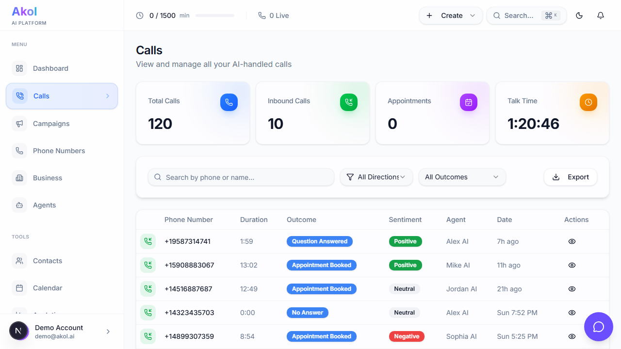 - Appointments Booked — Calls that resulted in a booking