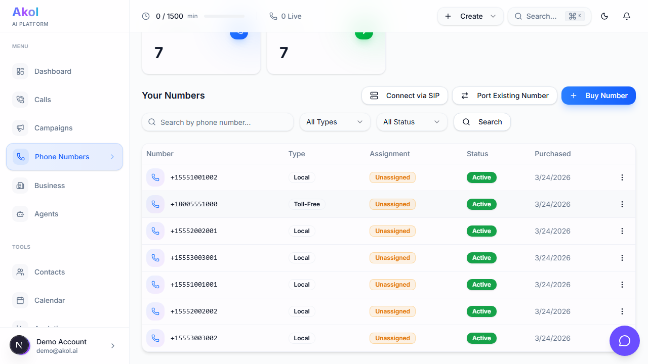 - Assign every number to an agent — Numbers without agents won’t answer calls